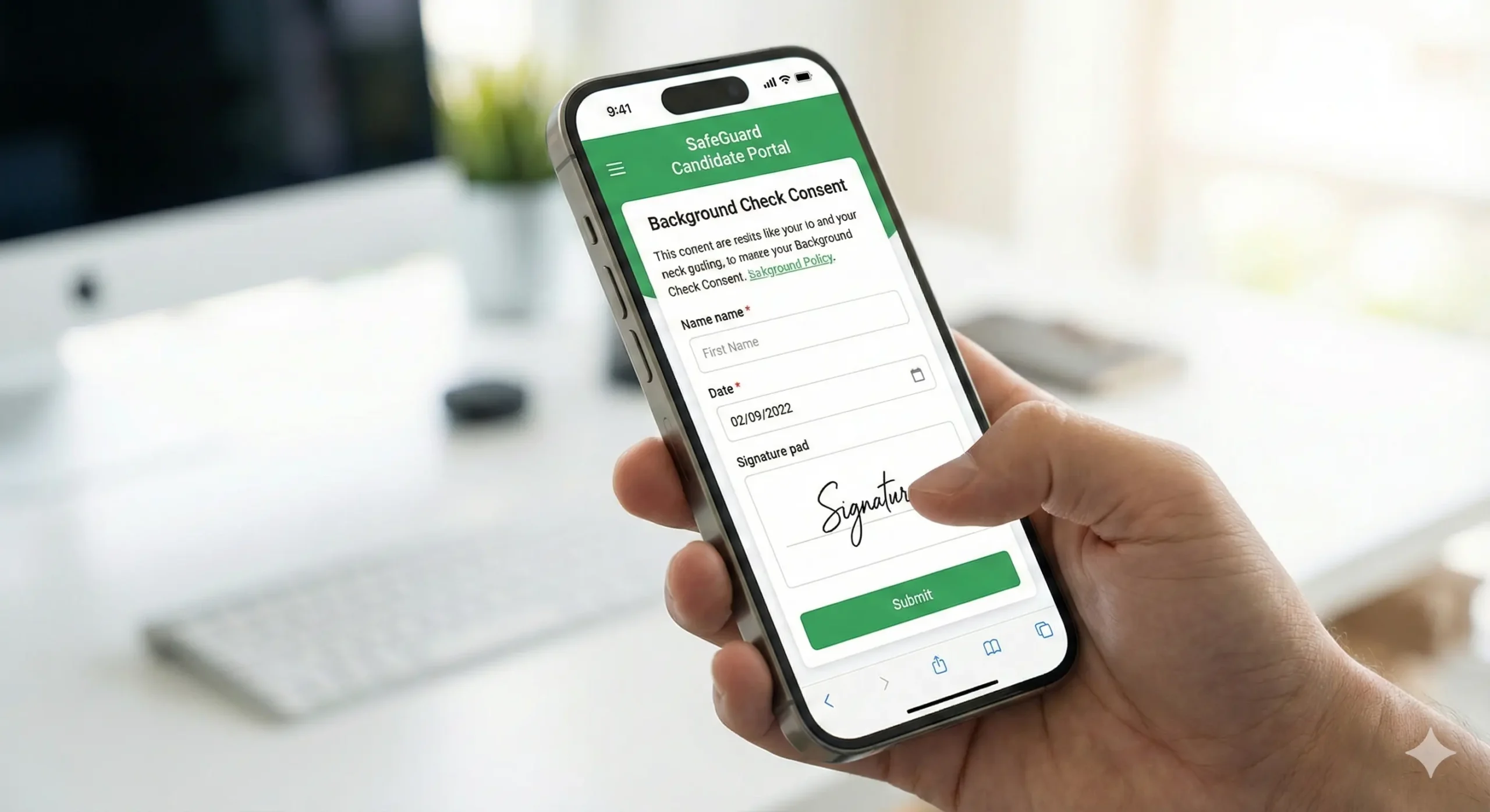 Send candidates a digital invite for instant consent or upload signed forms directly to the portal.